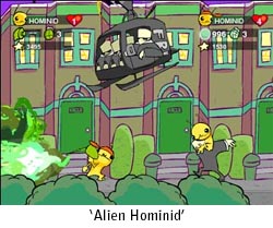 TOM: That was our intent, but it’s still a slow process. Overall, we CAN do it faster because we aren’t trying to pull together some massive big-budget production. We have a lot more room to be fun and creative with our games. Good ideas are implemented at will without having to be part of a rigid master plan. It’s still a lot of work and we don’t pump games out as fast as we would like to. We thought ‘Alien Hominid’ would take nine months but it took 15 instead. A lot of companies spend at least two years and a ton more money on their games though.